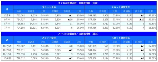 今週のスマスロの設置状況を項目ごとに見ていく。