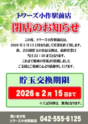 そのような環境下で、『トワーズ小作駅前店』は1994年8月のオープン以来、約32年にわたって営業を継続してきたが、このたび閉店を選択することに。なお、貯玉については最終営業日までに交換するよう利用者に対して呼びかけが行われている。