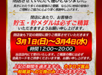 そんな中で、近年は低貸専門店として営業してきたが、設備の老朽化に伴い休業することとなったようだ。なお、貯玉・貯メダルについては2月28日までに精算するよう促されているので対象となる方はご確認いただきたい。