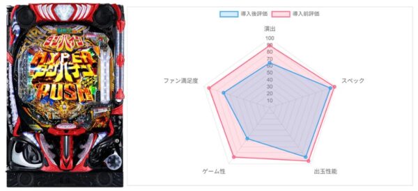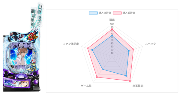 導入前は総合93点と圧倒的な点数で1位を獲得したが、点数が高すぎただけに導入後はさすがに数字を落とした。総じてLTにさえ入れば最高に面白いが、そこまでが非常に退屈という点で、ユーザーの意見が「神台」と「クソ台」に真っ二つに分かれている。本機はLTの爆発力に特化した「一点突破型」の設計で、スペックと出玉は魅力的だが、通常時の退屈さとホール側の厳しい運用が満足度を下げている。成功には最低限の釘調整が必要となりそうか…?