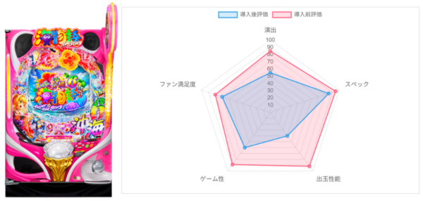 遊びやすいスペックや革新的なイヤホンジャックは素晴らしいと評価されているが、演出バランスと時短中の玉減りという致命的な欠点が、その魅力を台無しにしていると評価されている。時短中の玉減りは致命的だが、年配層向けのコンテンツを考えればそこまで気にする人は少ないか。なおイヤホンジャックについては使用率が相当低いようだ。