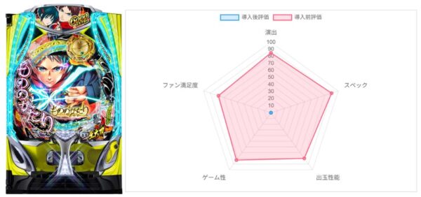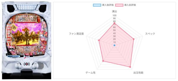 演出85点・スペック90点・出玉性能80点・ゲーム性83点・ファン満足度78点