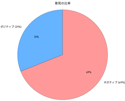 ユーザー意見の比率としては「ポジティブ:約31%/ネガティブ:約69%」と、ネガティブな意見の方が多い結果となりました。