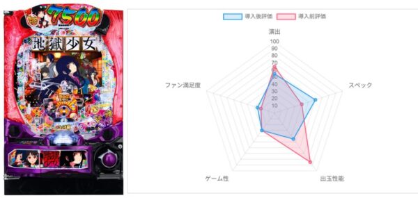 「遊びやすさ(初当り)」と「出玉(LT)」、どちらを重視するかで評価が真っ二つに分かれる傾向となっているが、唯一無二のスペックなのは間違いなくコンテンツ人気も高いため、好きな人には相当刺さる台となりそうだ。