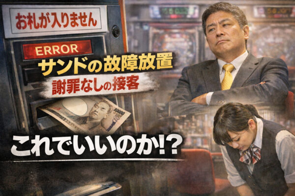 一つ目は、お札がサンドに入らないという不具合を把握しながら、そのまま放置している点。しかも、お客様に対してそのサポートが整備されていない。「この台番だけではなく、他にも入金できない箇所がある」という説明では、そのパチンコ店のオペレーションについて本当に信頼して良いのか、そして「またこの店に行きたい」と思うことができるかどうか、など再来店動機を大きく損ねかねません。私は「なぜ直っていないのか」などと尋ねることはしませんでしたが、複数箇所で入金できないことをそのままにしているのは、お客様のことを考えていないと受け取られてもやむを得ないでしょう。