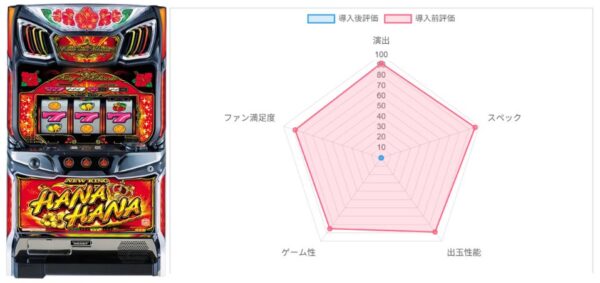 ※「AIレビュー」とは、その機種におけるネット上の評価・コメントを拾い集めて点数化したもの。ポジティブな声が多ければ点数は高くなり、逆にネガティブな声が多ければ低くなる傾向になっています。あくまでも忖度無しのユーザーの声が点数に反映されますから、「点数が高い=ユーザーの評判が良い」「点数が低い=ユーザーの評判が悪い」と思ってください。「演出」「スペック」「出玉性能」「ゲーム性」「ファン満足度」の各5項目100点満点で採点し、最終的に総合点も100点満点で採点しています。