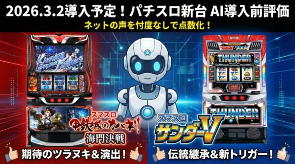 今回は2026年3月2日に導入が予定されるパチスロ新台の「導入前評価」をお届けします。評価は全て、ネット上のユーザー評価をもとにAIが算出しています。