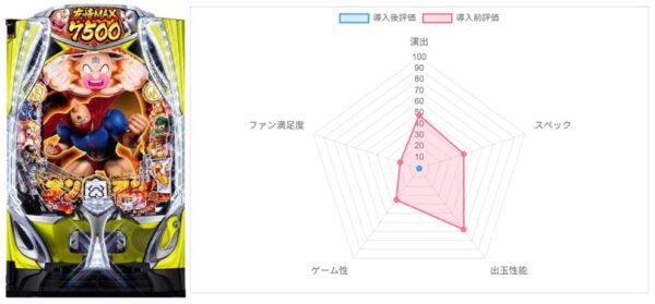 技術面では、SANKYOの最新3Dグラフィックスによる「黄金のマスク編」の再現や、出玉とリンクしたバトル演出が高く評価されています。しかし、総合評価は38点と低迷しています。その背景には、他機種とのスペック的類似性等に対する、ホールやユーザーの強い拒絶感があります。