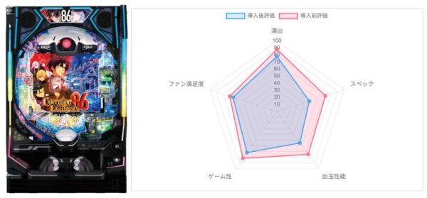 導入前同様、アムテックスの「e86-エイティシックス-」が1位となった。斬新なゲーム性ではあったが受け入れられているようで、好意的な意見が多い。スタートサポートが付いた遊びやすさも人気に一役買っていそうだ。「キン肉マン」と「リング」はともに人気シリーズではあるが、出玉性能に振った仕様で支持するのは一部ユーザーのみとなっている。