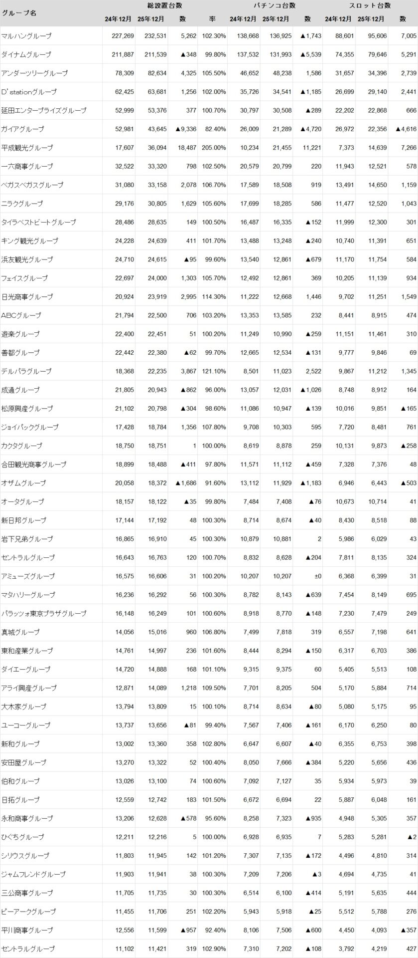 ※2025年12月時点における総設置台数上位50グループを表示