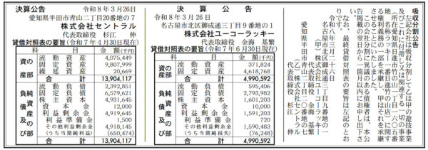 愛知県日進市のパチンコホール『ラッキー1BAN日進竹の山店』が㈱セントラル(本社・愛知県半田市)に事業承継されることが、3月26日付の官報に公告された。