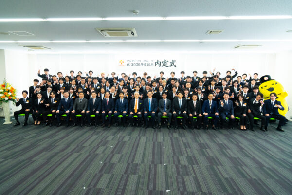 『キコーナ』などの屋号でパチンコホールをチェーン展開するアンダーツリー(本社・大阪市西区)は10月1日、大阪市西区の大阪本社において、2026年春に入社予定の新卒内定者に向けた「2026年度新卒内定式」を開催。内定式には内定者80名が出席した。