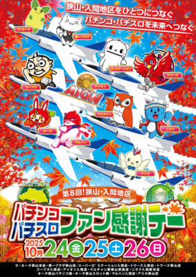 埼玉県遊技業協同組合の狭山・入間地区で営業するパチンコホールにおいて、2025年10月24日(金)から10月26日(日)までの3日間、「第8回!狭山・入間地区パチンコ・パチスロファン感謝デー」を開催する。