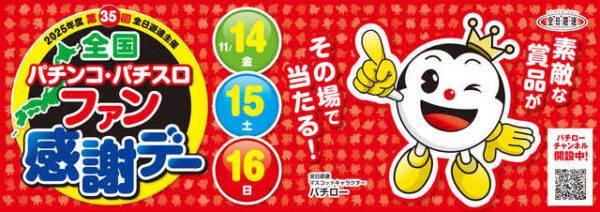 全日本遊技事業協同組合連合会(全日遊連)はこのほど、全国の遊技組合加盟店舗において「第35回全国パチンコ・パチスロファン感謝デー」を開催する。
