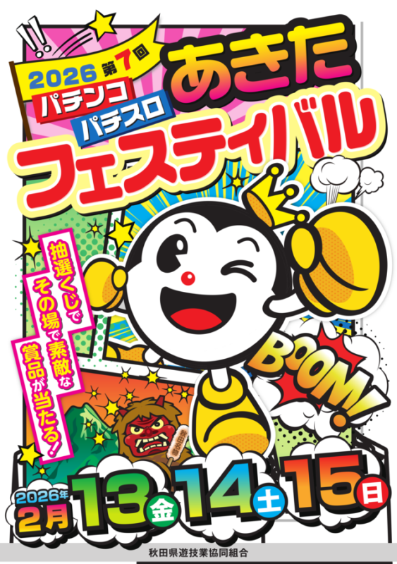 秋田県遊協、2月13日より「2026 第7回 パチンコパチスロあきたフェスティバル」を開催