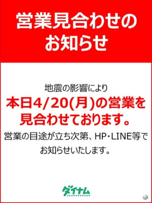 『ダイナム青森八戸港店』の営業見合わせのお知らせ