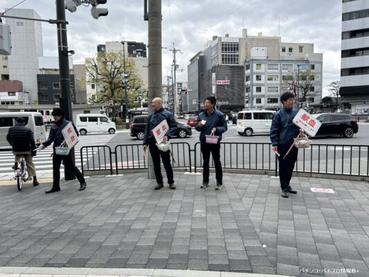 京都府遊技業協同組合(京遊協)の青年部会は3月13日、京都市下京区の四条大宮駅前ロータリーにおいて、9回目となる献血活動を実施した。組合員やホールスタッフ、関連業者など62名が献血に協力した。