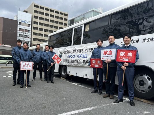 同活動は、京遊協が2014年5月に組合創立50周年を記念して京都府赤十字血液センターに小型献血車「球都号」を寄贈したことをきっかけに始まった社会貢献事業で、青年部会が中心となって実施してきた。当日は、青年部会員8名全員が参加し、ホール関係者や遊技機関連企業のスタッフなど多くの業界関係者が朝から献血に協力。店舗でのポスター掲示や献血案内の入ったポケットティッシュ配布による効果もあり、飛び込みで参加する来場者も見られるなど、順調なペースで献血が進んだという。