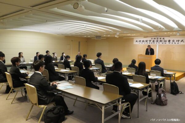 公益財団法人大遊協国際交流・援助・研究協会は4月6日、大阪市中央区のホテルプリムローズ大阪において、令和8年度外国人留学生奨学金受給証書交付式を開催した。
