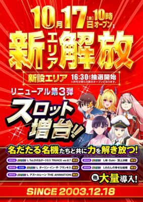 千葉県習志野市のパチンコ店『PIA津田沼』が、明後日2025年10月17日(金)にスロットの増台を実施する。同店では2階の一部を工事していたが新設エリアが開放されるようだ。