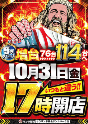 三重県桑名市で営業するパチンコホール『キング観光サウザンド桑名サンシパーク』はこのほど、2025年10月31日(金)に5円スロットを増台することを発表した。