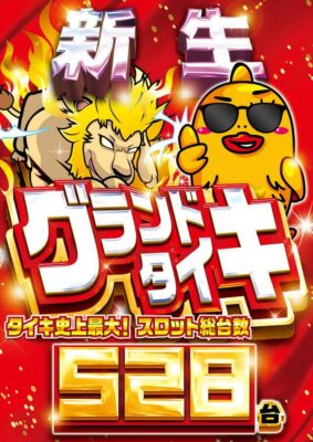 そんな中『タイキ1010四日市泊小柳店』では、スロットコーナーの増台がアナウンスされた。スロットの総台数は456台から528台へと大きくスケールアップする。