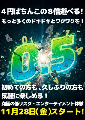 そんな中『TOHO幕張店』では、0.5円パチンコの導入がアナウンスされた。