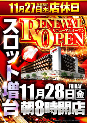 本日確認できたパチンコ店のリニューアルオープン情報をまとめました。