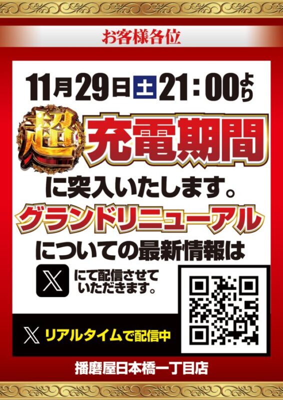 大阪府大阪市中央区で営業するパチンコホール『播磨屋日本橋一丁目店』はこのほど、2025年12月12日(金)にグランドリニューアルオープンを実施する。