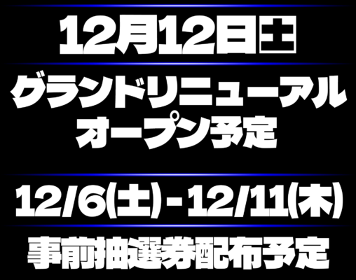今回のグランドリニューアルオープンに先立ち、事前抽選入場券の配布が2025年12月6日(土)から12月11日(木)に実施されることが発表されている。詳細は、X、LINE、P-WORLDにて確認とのこと。
