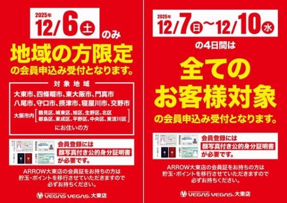 【関連記事】大阪府大東市にてパチンコ店『ベガスベガス大東店』が健全化推進機構に登録される、『ARROW大東店』からの屋号変更
