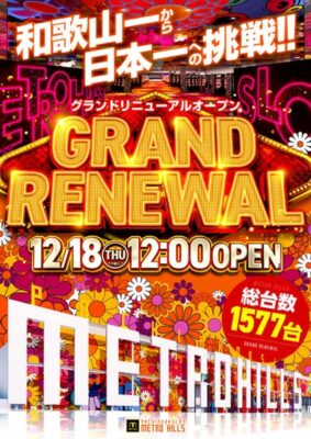 【関連記事】和歌山県和歌山市のパチンコ店『メトロ ヒルズ』が11月4日からリニューアル準備のため休業中、12月中旬再オープン予定