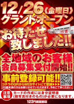 その同店が屋号を『123門真宮前店』へと変更し、12月26日(金)にグランドオープンすることが公表された。