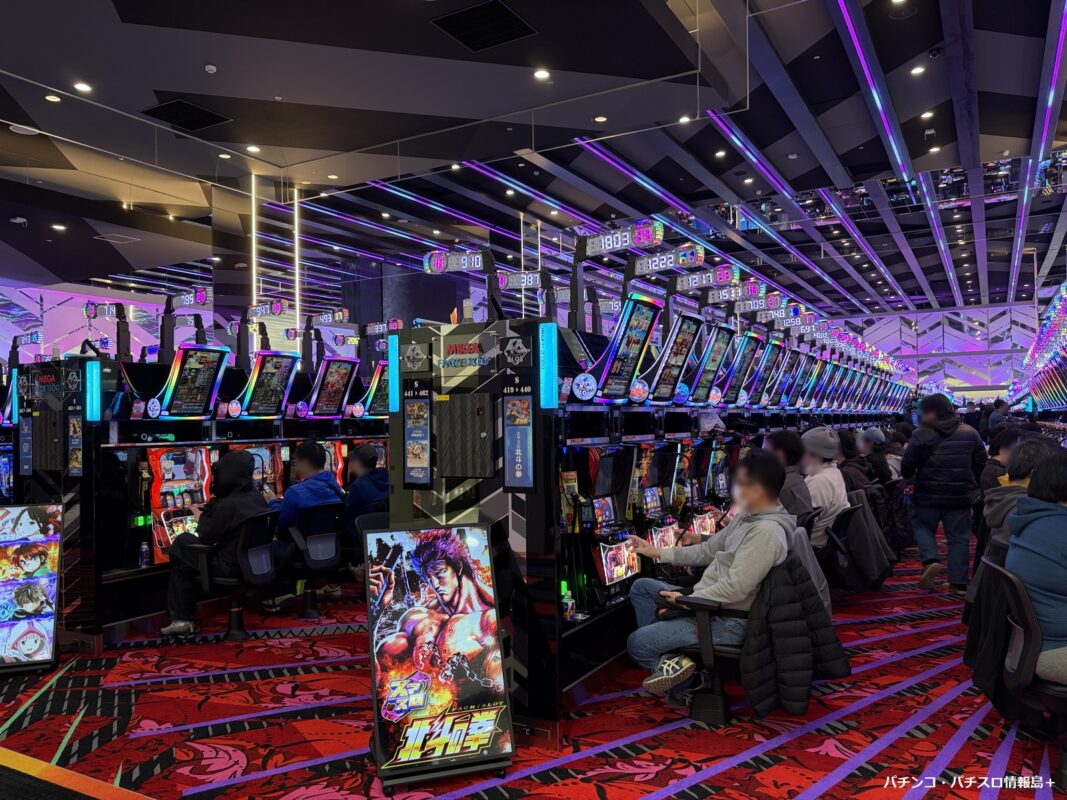 中でもスロットコーナーの強化が著しく、オープン初日は12時の開店と同時に46枚スロット591台が即満席となるロケットスタートを切った。