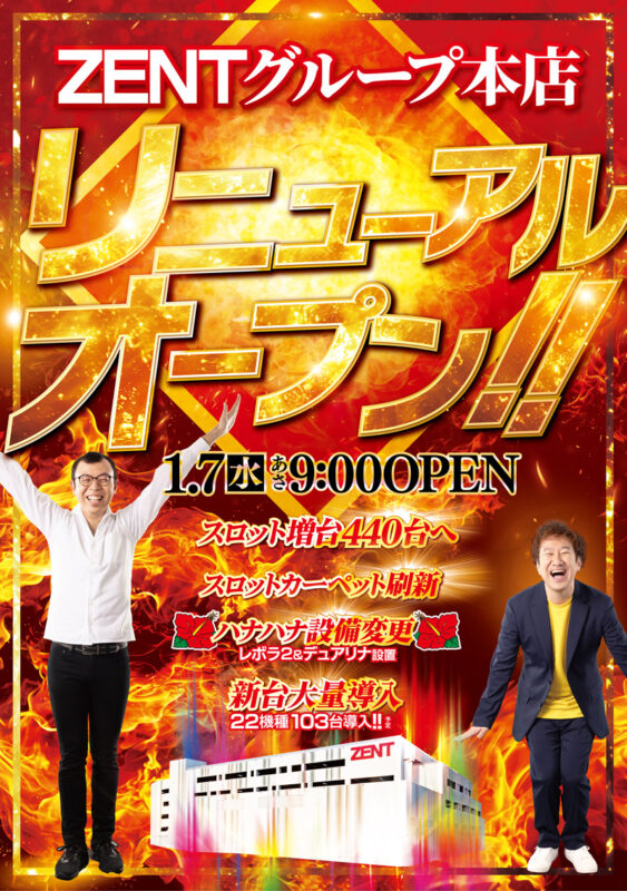 愛知県豊田市で営業するパチンコホール『ZENT豊田本店』はこのほど、2026年1月7日(水)にリニューアルオープンを実施した。