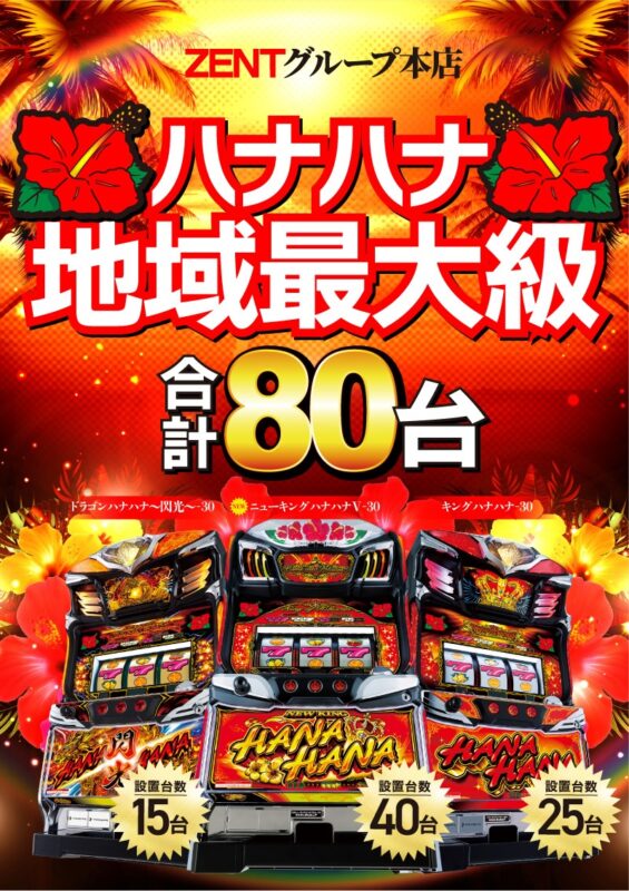 機種構成においても、「ニューキングハナハナV‐30」を40台設置するなど、ファンには見逃せないラインナップとなっている。
