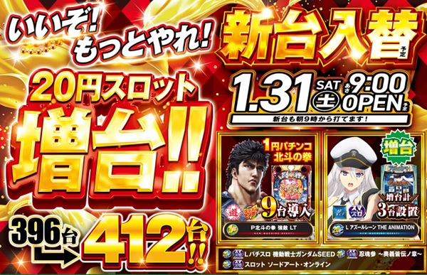 今回の増台により、20円パチスロではエリア内最大規模となる同店。今後の営業が気になるところである。