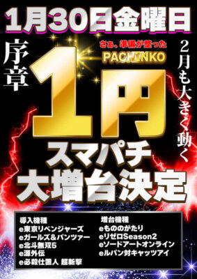 スロット増台(694台→738台)、4円パチンコ増台(492台へ)、データランプ導入(デジ太郎432台)