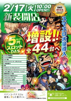 埼玉県蕨市のスロット専門店『DAS蕨店』が、2026年2月17日(火)に5円スロットを44台へ増台する予定だ。