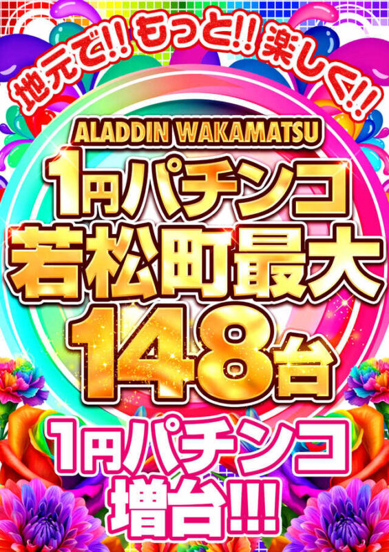 今回のリニューアルでは「パチンコフロアアップデート」と銘打ち、合計4つの大きな変更が行われる。まず注目すべきは1円パチンコの増台だ。従来の104台から、若松町最大級となる148台へと大幅にスケールアップする。これに伴い、0.2円パチンコの撤去が実施された。