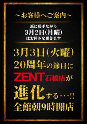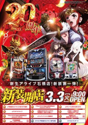 【ホール情報】新たなるALIVE誕生、栃木県下野市のパチンコ店『ZENT石橋店』が3月3日に『ALIVE石橋店』へ屋号変更オープン