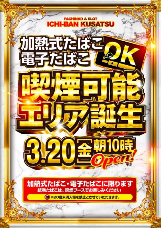 【ホール情報】滋賀県草津市の『ICHI-BAN草津店』が3月20日にリニューアル!加熱式たばこプレイエリアを新たに導入