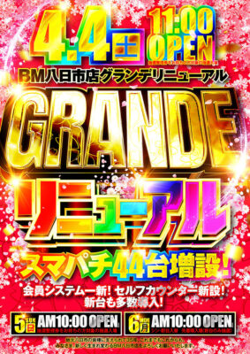 4/1~4/3店休、スマパチ増台(44台)、会員システム一新、セルフカウンター導入