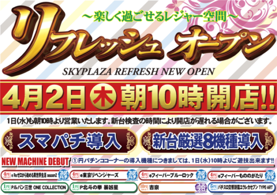 パチンコ店のリニューアルオープンまとめ(※4月2日)