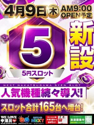 5円スロット新設、スロット増台(計165台)