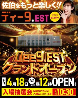 大分県佐伯市にて、パチンコ店『Dee9.EST』が2026年4月18日(土)にグランドリニューアルオープンした。『Dee9.EST』は『V-MAX EST(エスト)』からの屋号変更によるオープンである。