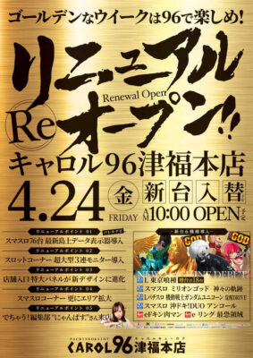 本日確認できたパチンコ店のリニューアルオープン情報をまとめました。
