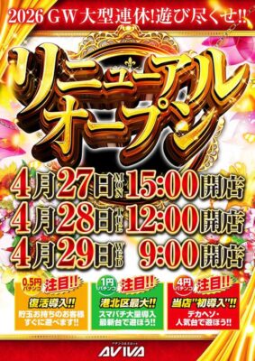 本日確認できたパチンコ店のリニューアルオープン情報をまとめました。